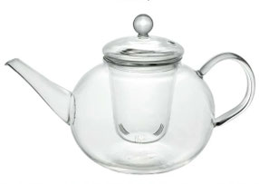 Teekanne mit Sieb und Deckel aus Glas